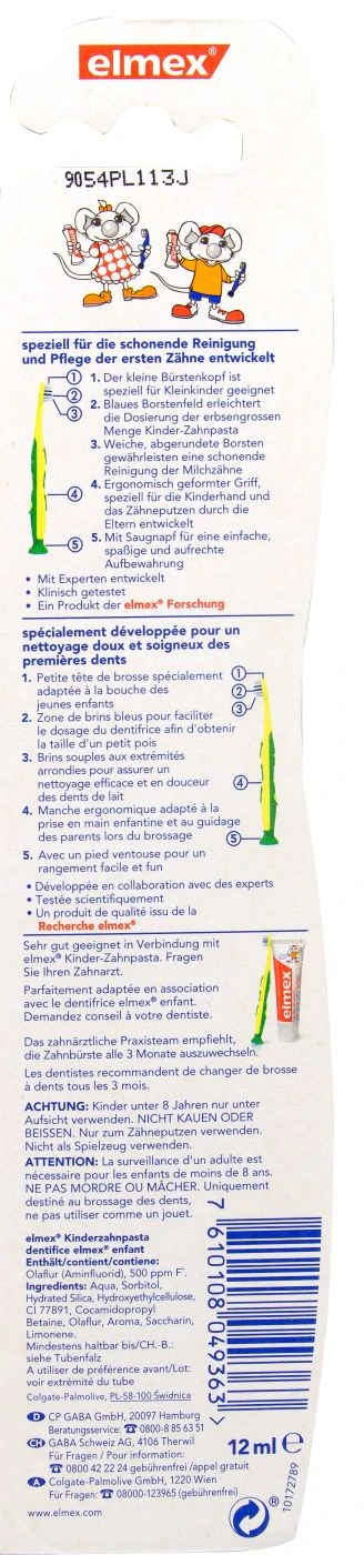 Elmex Lern-Zahnbürste Weich ist für Kleinkinder von 0-3 Jahren geeignet, damit ihre Zähne schon früh gereinigt werden. Die Zahnbürste hat einen extra weichen Bürstenkopf und einen sehr bequemen Bürstengriff. Die besonders kleine Bürste ermöglicht eine gezielte und schonende Reinigung der Zähne und des Zahnfleisches. Gründliches Putzen mit der Zahnbürste beugt Karies und andere Zahnkrankheiten vor und sorgt für gesunde Zähne.