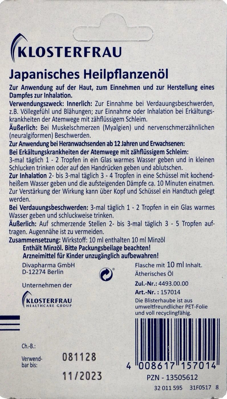 Klosterfrau Japanisches Heilpflanzenöl ist ein pflanzliches Arzneimittel und besteht zu 100 % aus